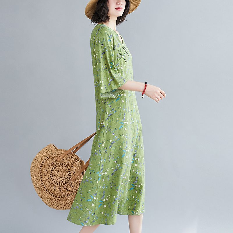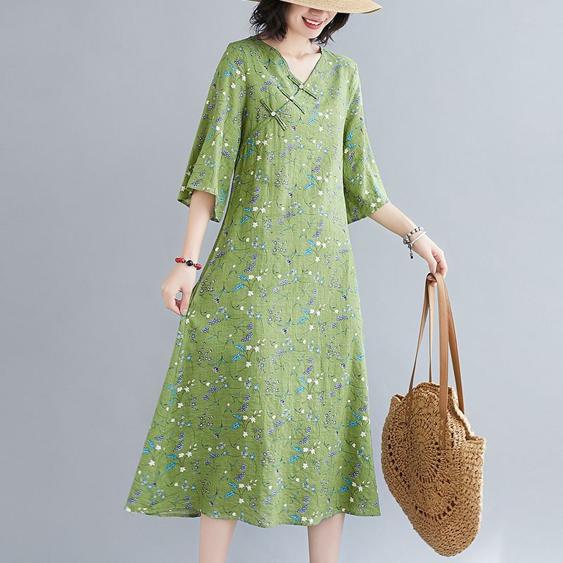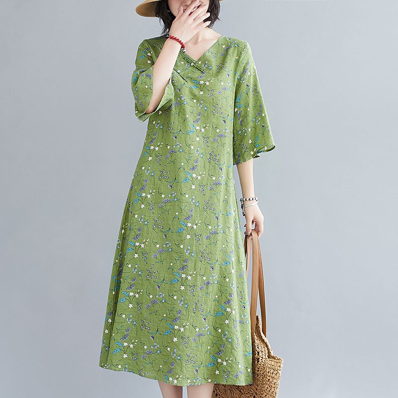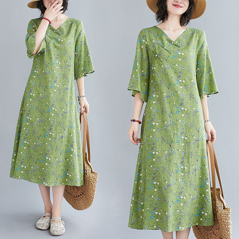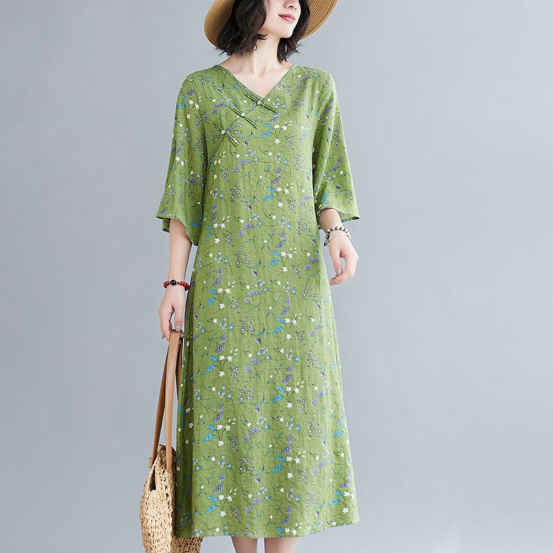 【復古改良盤扣v領連衣裙】時尚與古典的結合,精選優質亞麻,舒適清爽!